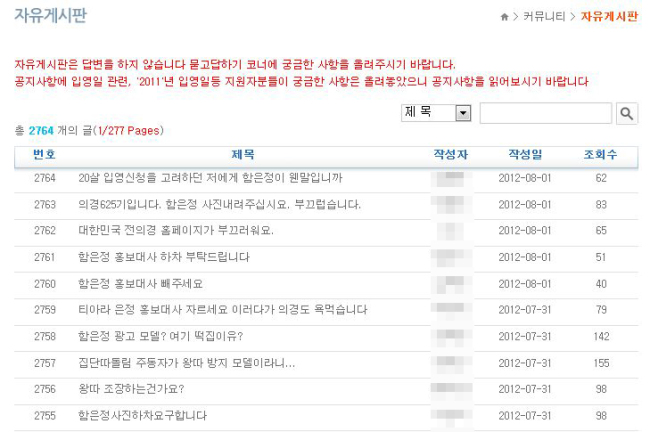 8月 1日午前 7時現在大韓民国戦意頃ホームページ自由掲示板には 'ハム恩情メイン写真入れ替え'を要求するヌリクンドルの意見が数十件ほど上って来た状態だ. ティアラの所属社がファヤングとの契約解約を宣言した去る月 30日から 'ティジンです(ティアラに真実を要求します)'を含めて各種コミュニティには弘報大使及びメイン写真入れ替えを要求する文を戦意頃ホームページに申し上げようという意見が降りそそいでいる.