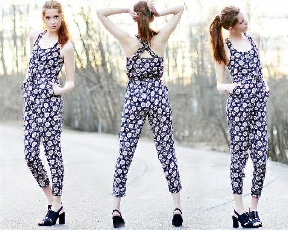 こんなに派手なパターンのジャンプスーツ一つさえあれば何のアクセサリが