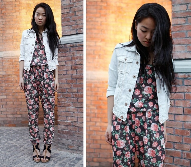 3. フラワーパターンのジャンプスーツ