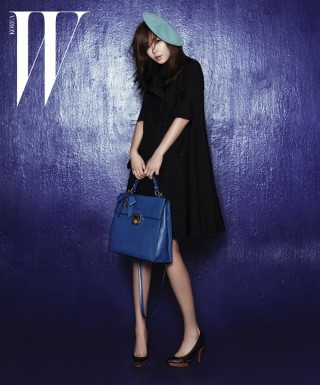 チェ・ガンヒ増えた空色パンモザとブラックコート, 派手なブルーカラーのケイトバックをマッチ!